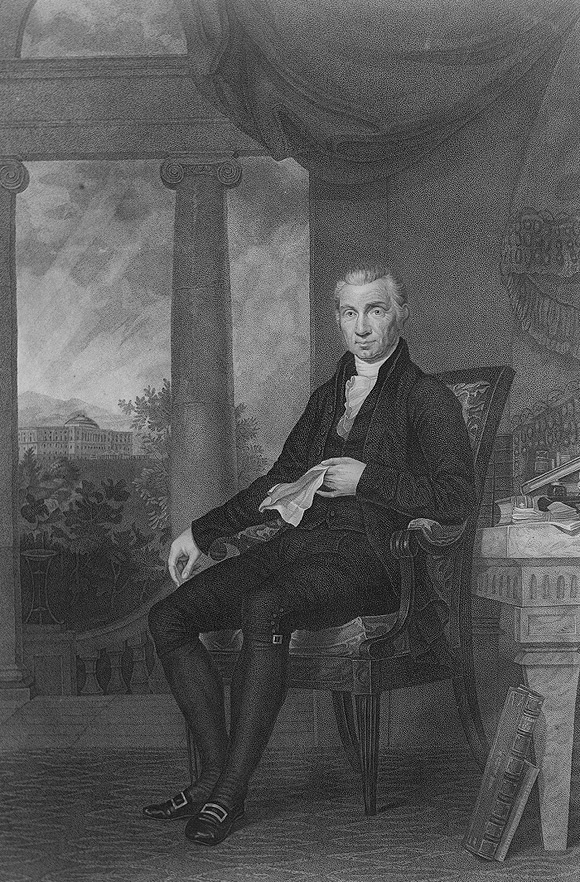 Credit: James Monroe, seated, at White House; view of Capitol in background. painted by C.B. King ; engraved by Goodman & Piggot. Philada. (Philadelphia):
